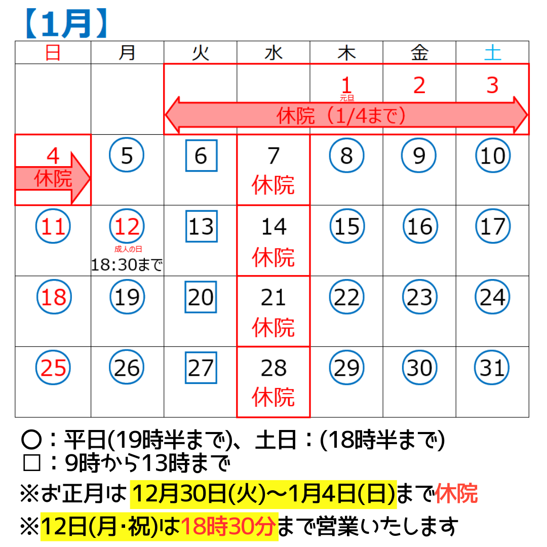 1月の営業日のお知らせです