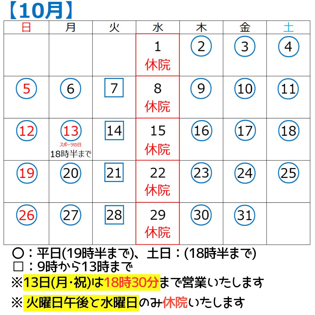 10月の営業日のお知らせです